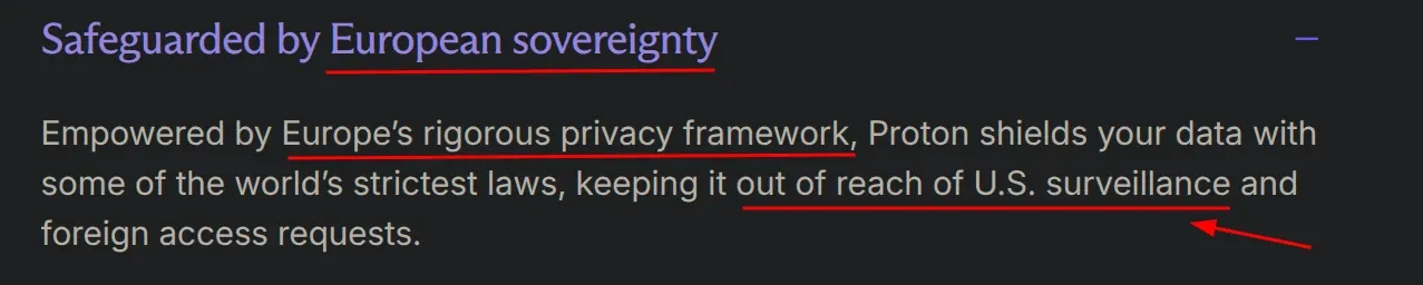 Their privacy policy explicitly acknowledges FTC jurisdiction and states the company will "access, preserve, and disclose your information" to comply with "law enforcement requests, national security requirements, and legal process, such as a court order or subpoena," the exact scope of the CLOUD Act. Proton built their CLOUD Act escape hatch on CLOUD Act infrastructure.